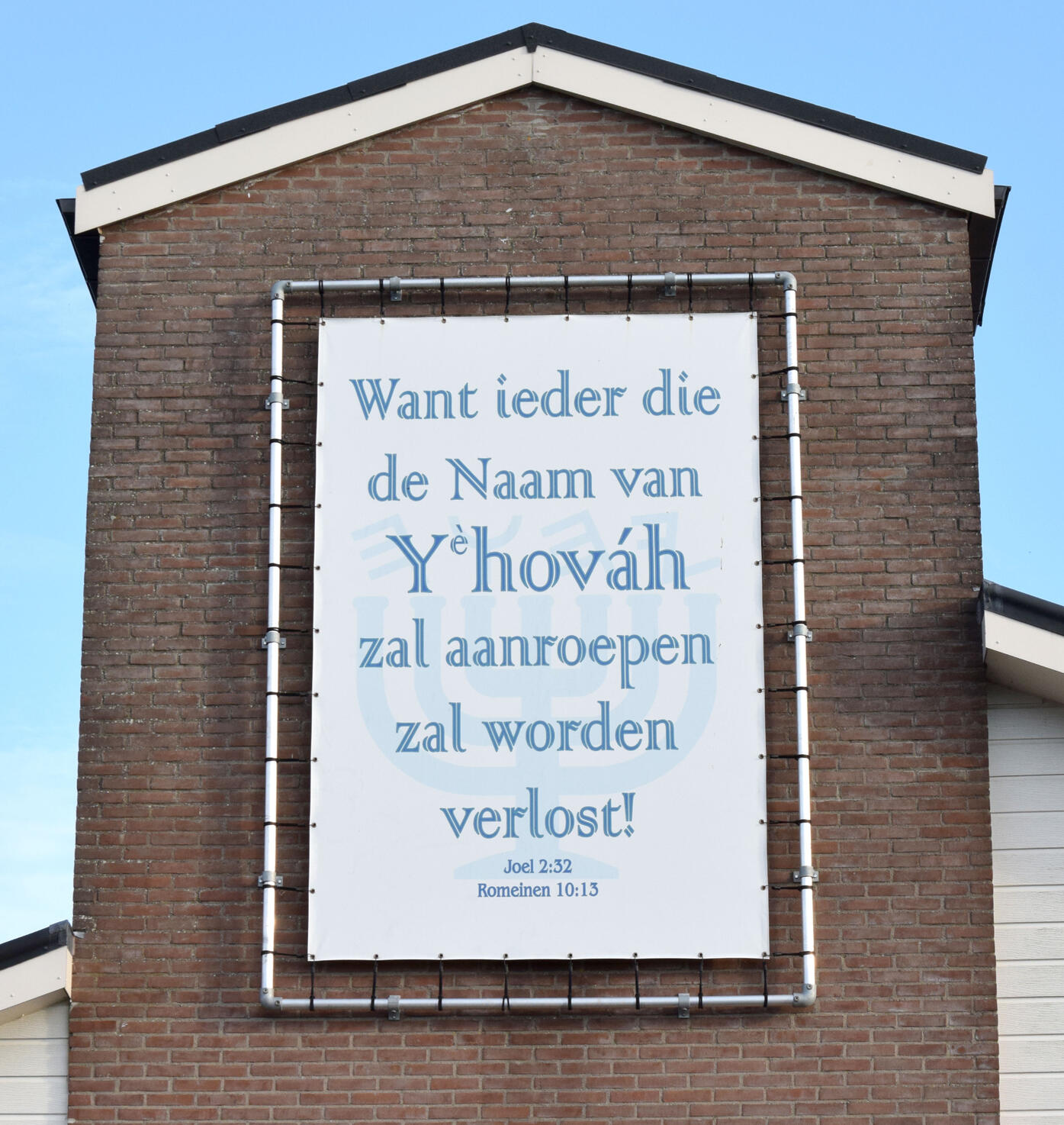 The menorah on the banner of the tower (see the photograph) shows the name of our Creator in Ancient Hebrew, which is pronounced Yehovah. The Cornerstone is not associated with the Jehovah Witnesses, but honours the Creator by using His Qodesh Name, according to Deuteronomy 12:3-4.Also ye shall overthrow their altars, and break down their pillars, and burn their groves with fire: and ye shall hew down the graven images of their gods, and abolish their names out of that place. Ye shall not so do unto Yehovah your Elohim. Deuteronomy 12:3, 4. (i.e. do not abolish His Name by never using it!).